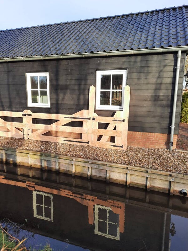 Inclusief verstelbare gehengen, schuifgrendel, extra paal 150 x 150 MM.